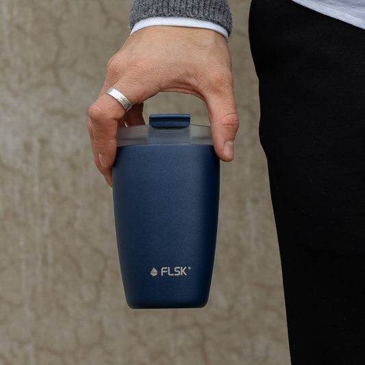 The FLSK to-go coffee cup is not only practical but also environmentally friendly. You can reuse it hundreds of times without producing any waste. Compare that to disposable to-go coffee cups, which end up in the trash after the first use.