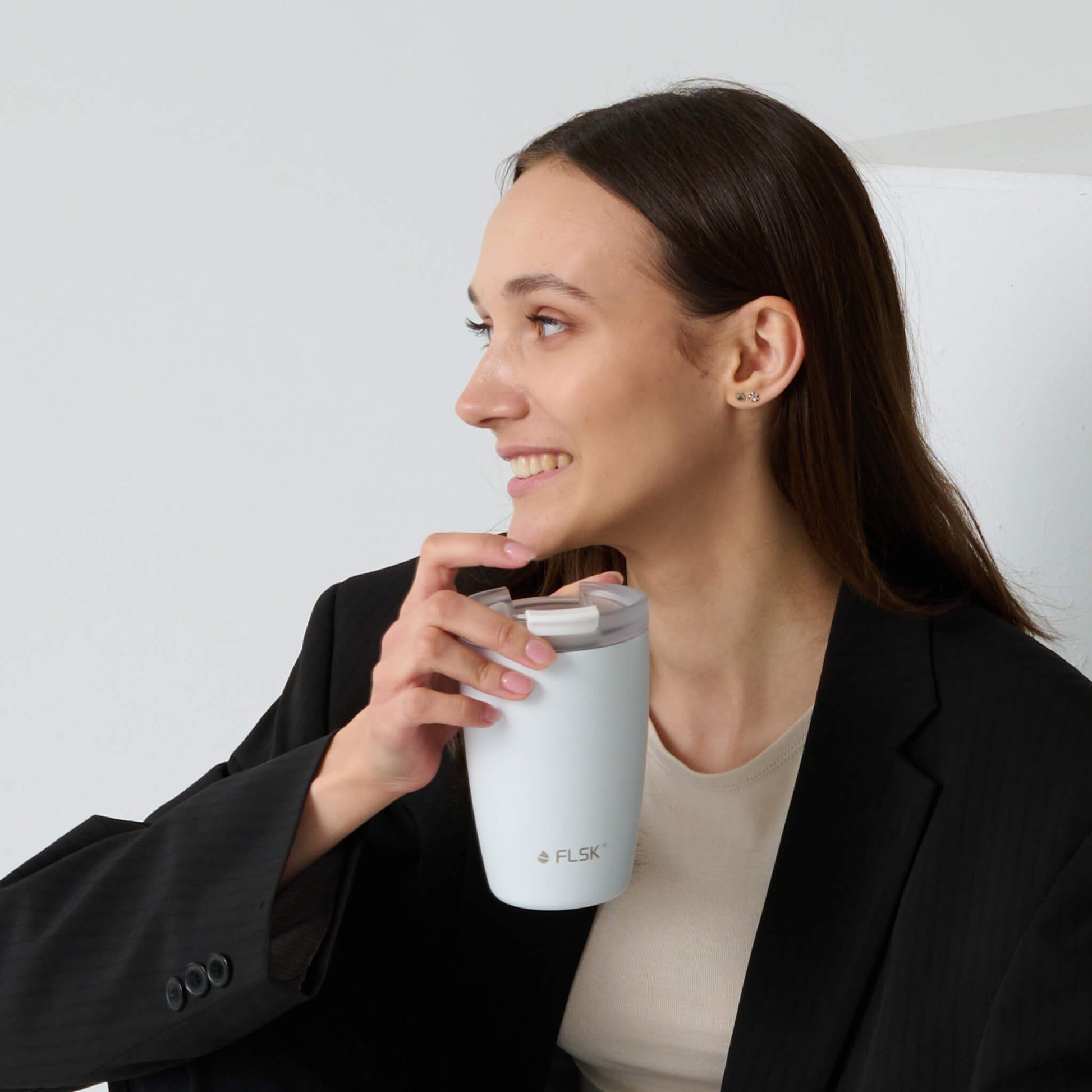 Your world never stands still. So why should you stop for your coffee? In the FLSK coffee cup white you can easily take it with you and enjoy it in a relaxed manner on the way to your first appointment. And when we say relaxed, we mean it: