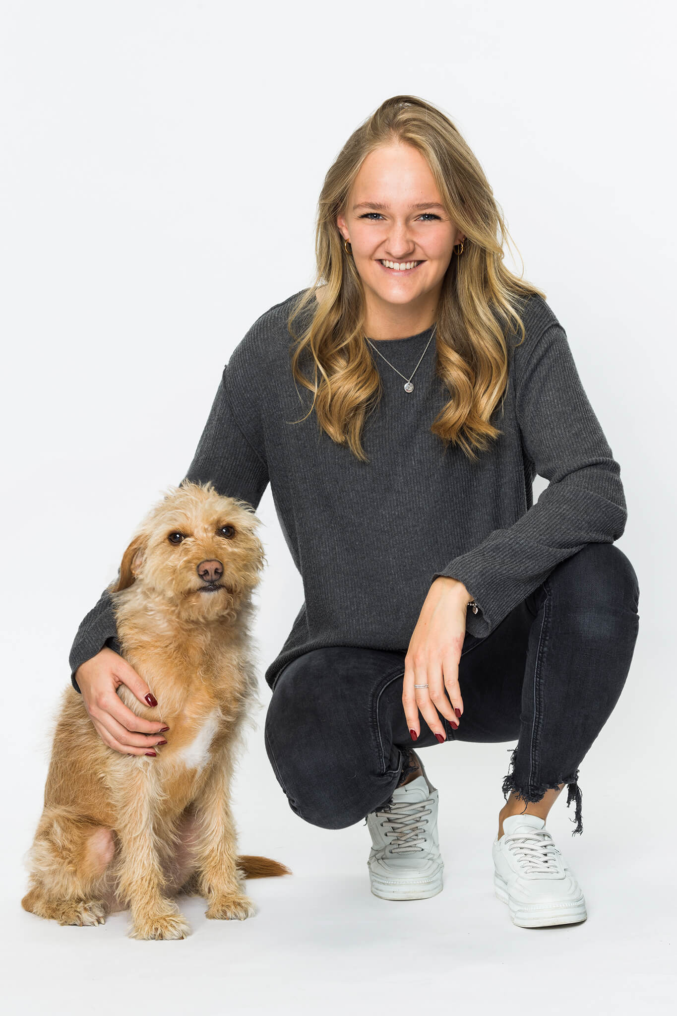 Sissy dołączyła do czteronożnego zespołu FLSK w czerwcu 2021 r. i każdego dnia wywołuje uśmiech na naszych twarzach. Z uspokajającą regularnością obchodzi biuro, delikatnie kładąc głowę na kolanach każdego, aby delikatnie poprosić o przekąskę. Kiedy już ma dość psich przysmaków i głaskania, wraca do najwygodniejszego fotela w całym biurze, aby się zdrzemnąć. To jest równowaga między życiem zawodowym a prywatnym, o jakiej marzymy! W weekendy uwielbia wychodzić do stajni z Anicą, ścigać się z końmi i innymi psami.