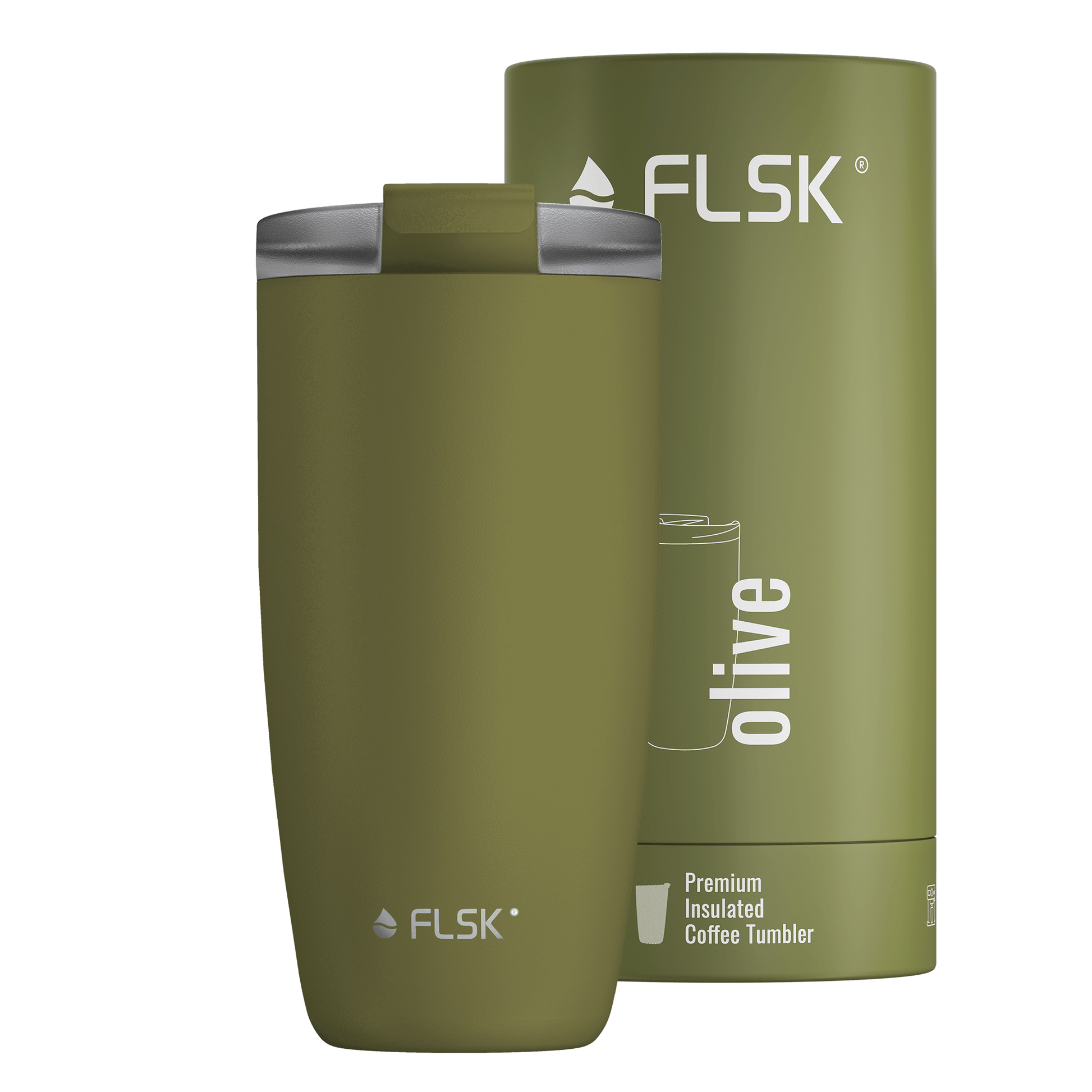 Freu Dich auf ein fantastisches Unboxing-Erlebnis: Dein FLSK Kaffeebecher olive kommt in einer schicken, komplett plastikfreien Tubebox.