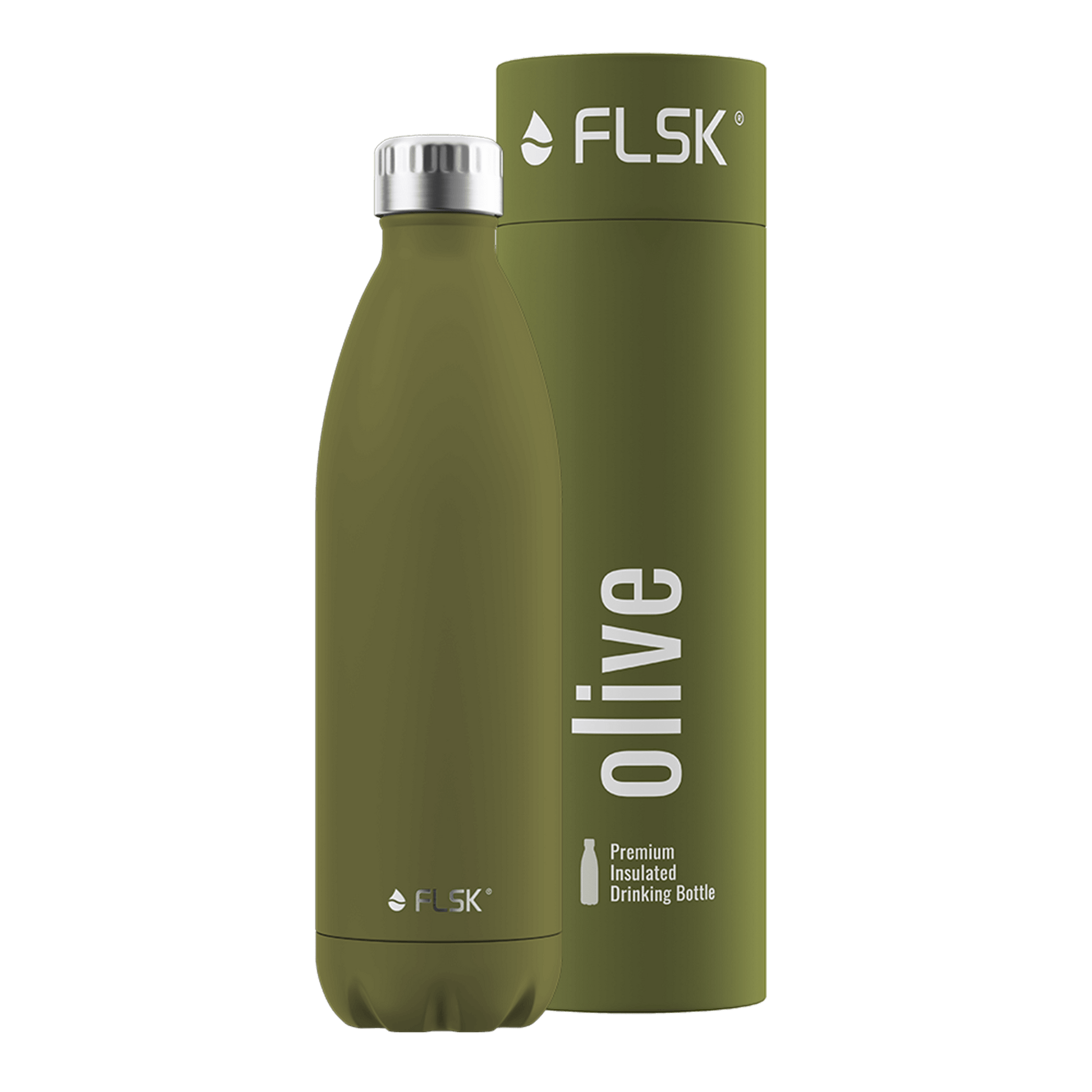 FLSK Trinkflasche olive: Mit Dir durch heiß und kalt.